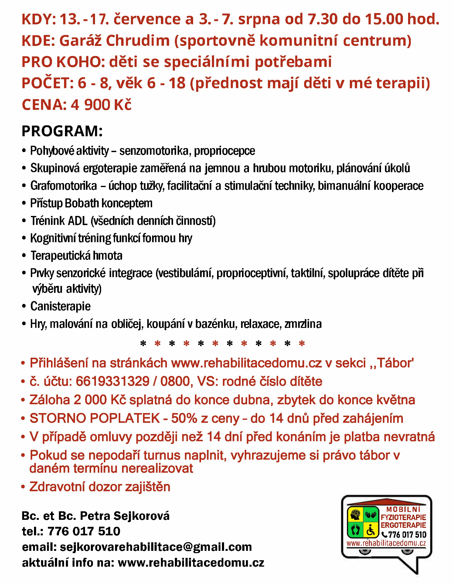 FYZIO A ERGO PŘÍMĚSTSKÝ TÁBOR O LETNÍCH PRÁZDNINÁCH 2026